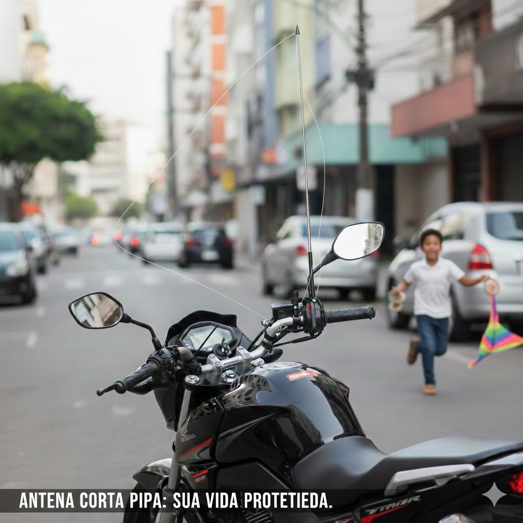 Antena corta pipa de 6 estágios para instalação no guidão, projetada para oferecer máxima proteção ao motociclista contra linhas de pipa com cerol ou linha chilena. Fabricada em fibra resistente, é leve, durável e eficiente, proporcionando maior segurança no uso diário.