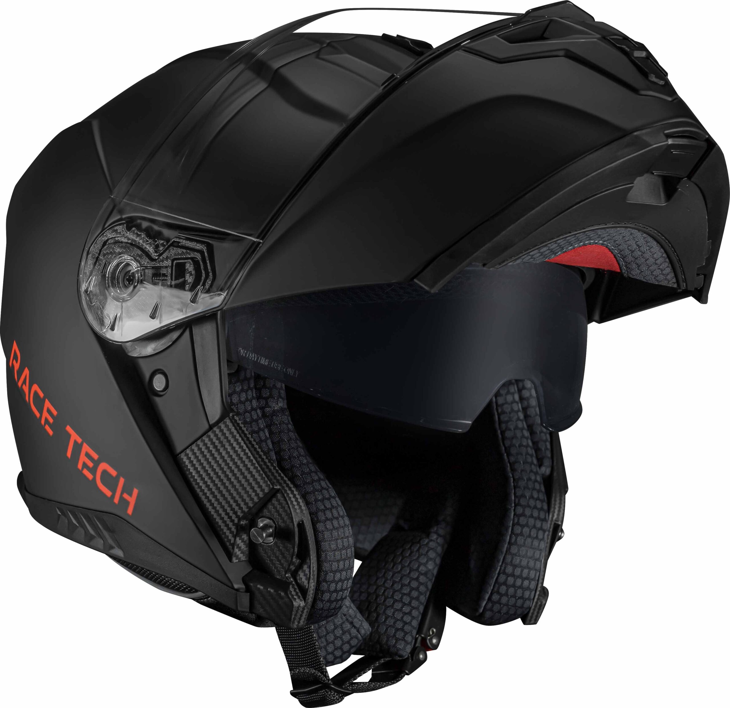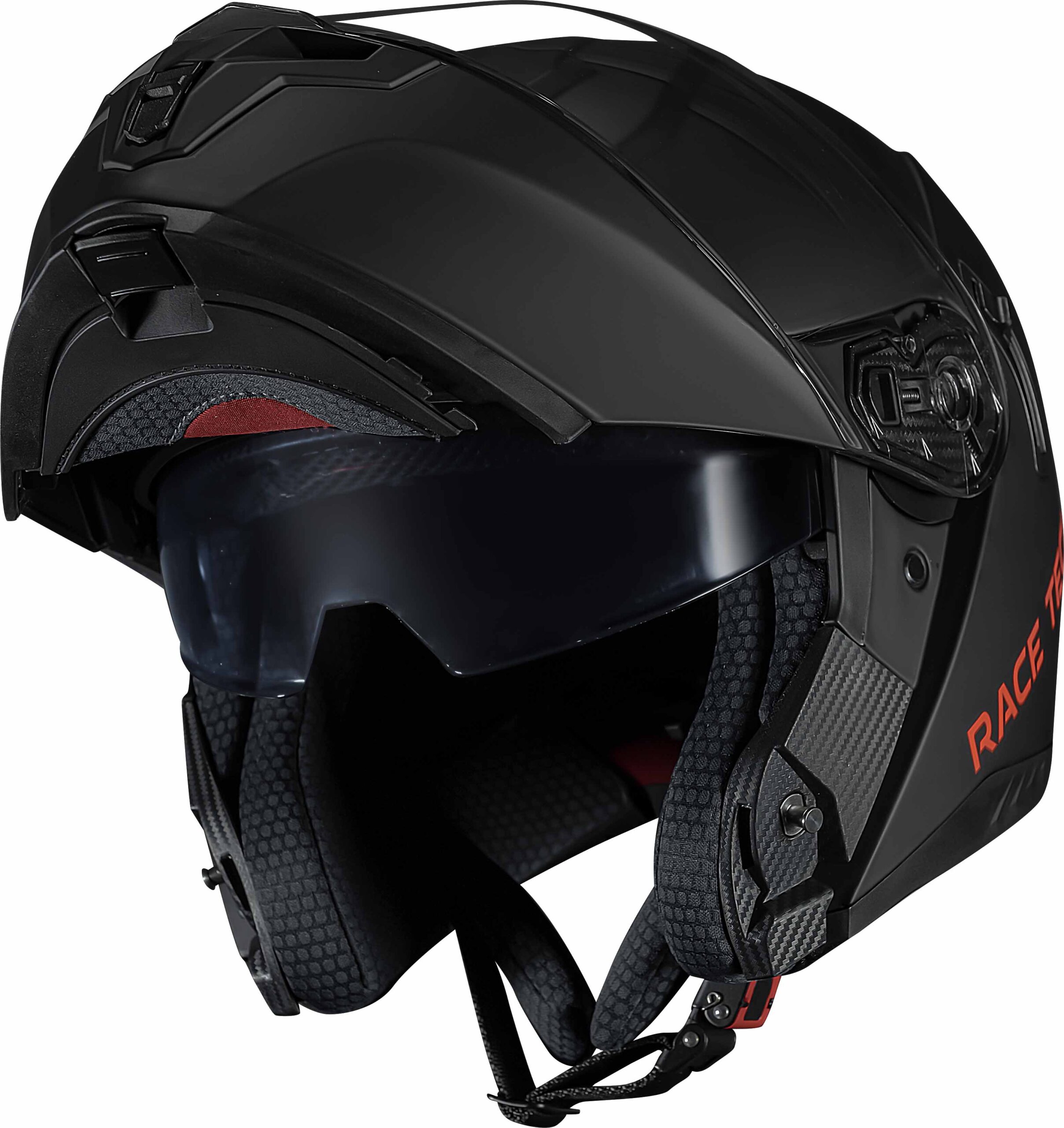 Diferente de capacetes mais populares, os capacetes Race Tech trazem forração interna removível com tecido tecnológico lavável. O sistema de engate é micrométrico e a pintura possui proteção contra raios solares. Para os que querem mais estilo, viseiras coloridas podem ser adquiridas separadamente.