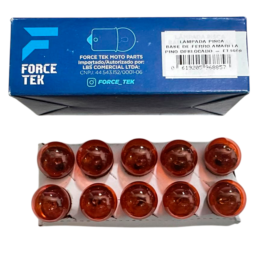 LAMPADA PISCA 12V 10W BASE FERRO AMARELA PINO DESLOCADO TITAN 160 FORCE TEK